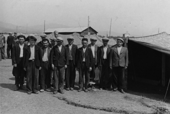 Gruppo di prigionieri di guerra greci internati a campo di Grupignano in abiti civili.